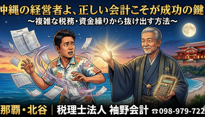 税理士法人袖野会計では、那覇市・沖縄県の事業者様に向けて、単なる税金計算だけでなく、手元にお金を残すための最適な節税・資金繰りプランをご提案します。