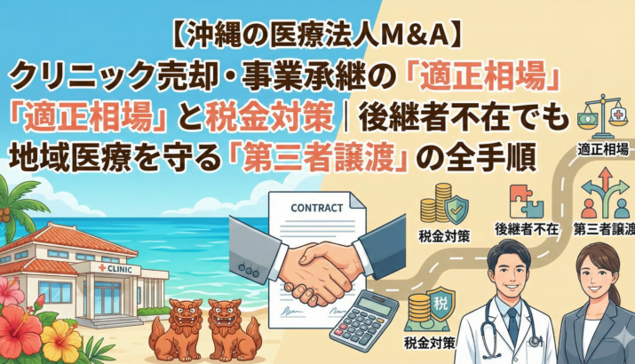 この記事では、沖縄の医療法人M&Aにおける「適正相場」の考え方や、手元に資金を残すための「税金対策」、そして具体的な進め方を解説します。